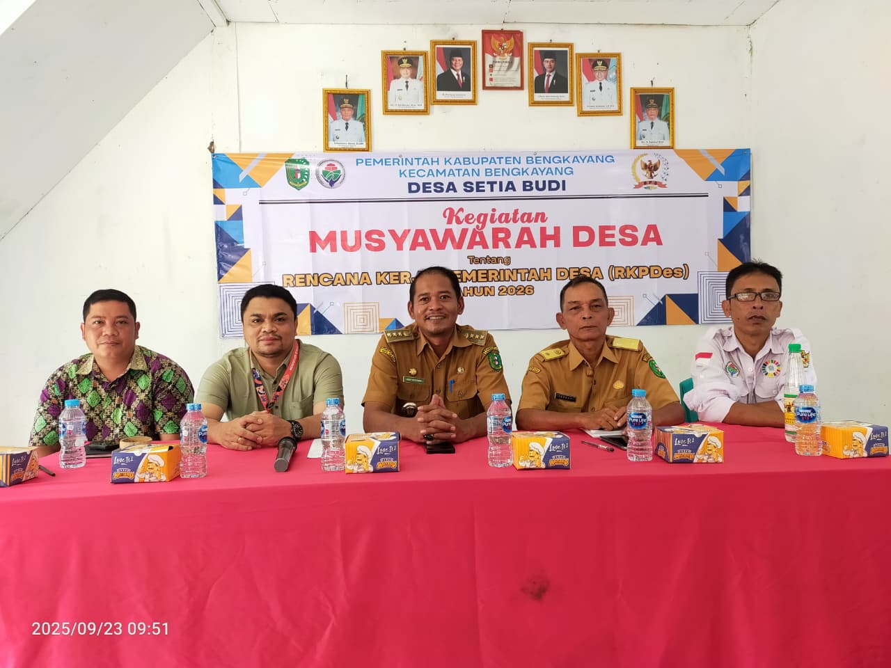 Desa Setia Budi, Kecamatan Bengkayang – Camat Bengkayang menghadiri kegiatan Musyawarah Desa (Musdes) tentang Rencana Kerja Pemerintahan Desa (RKPDes) Tahun Anggaran 2026 yang dilaksanakan pada Selasa (23/09/2025) di Kantor Desa Setia Budi, Kecamatan Bengkayang.