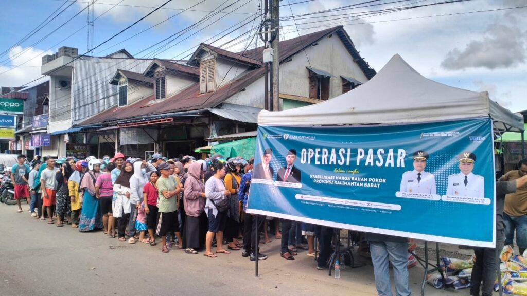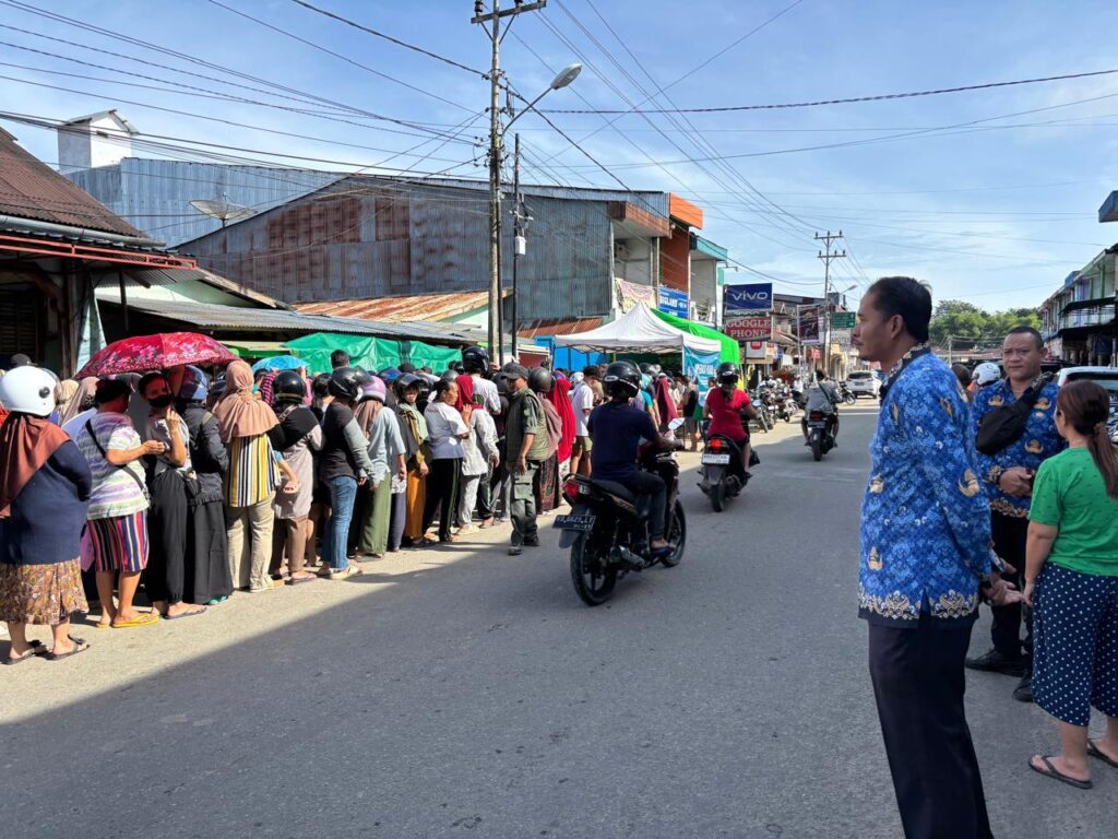 Bengkayang – Camat Bengkayang menghadiri kegiatan Operasi Pasar dalam rangka stabilisasi harga bahan pokok yang dilaksanakan pada Senin (17/11/2025) di halaman parkir Pasar Sorela Bengkayang. Kegiatan ini diadakan oleh Pemerintah Provinsi Kalimantan Barat melalui Dinas Perindustrian, Perdagangan, Energi dan Sumber Daya Mineral sebagai upaya konkret menjaga keterjangkauan harga serta ketersediaan kebutuhan pokok masyarakat.